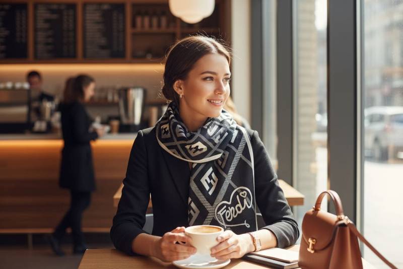 • Fendi_FF_Logo_Wool_Shawl_Scarf_Soft_Black_&_Grey_Heart_Pattern_With_OG_Box_&_Carry_Bag