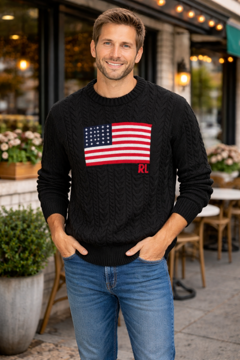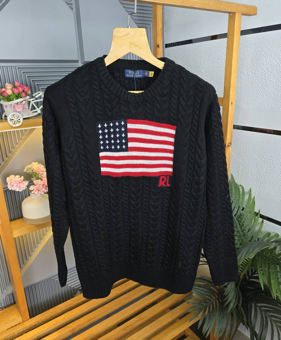 R L ROUND NECK SWEATER BLACK M445-BK