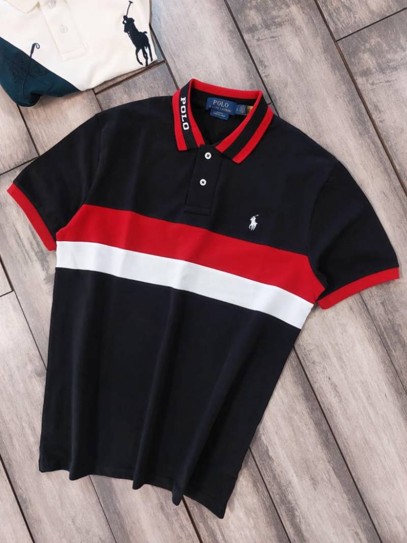 Ralph Laure n Black Premium Cotton Pique fabric Polo Tshirt with Collar Design and Embroidered Logo 3596