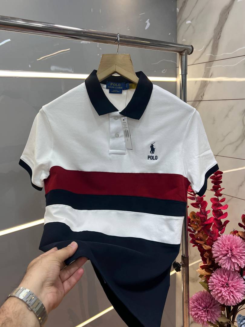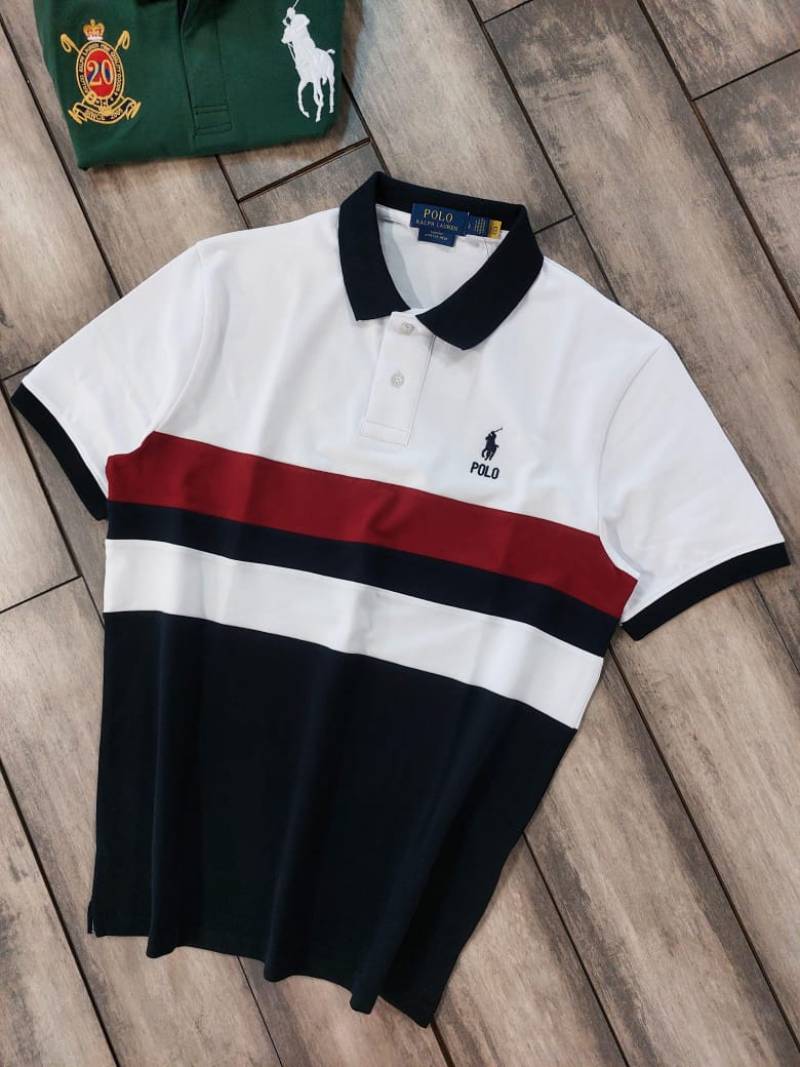 Ralph Laure n White Premium Cotton Pique fabric Polo Tshirt with Front Design and Embroidered Logo 3598