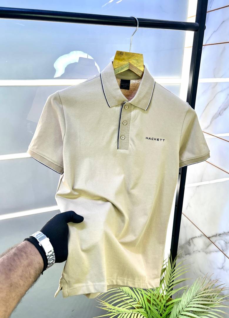 Sale Aston Martin Hacket t Beige Polo Premium Collar Neck T-shirt F2698-BE