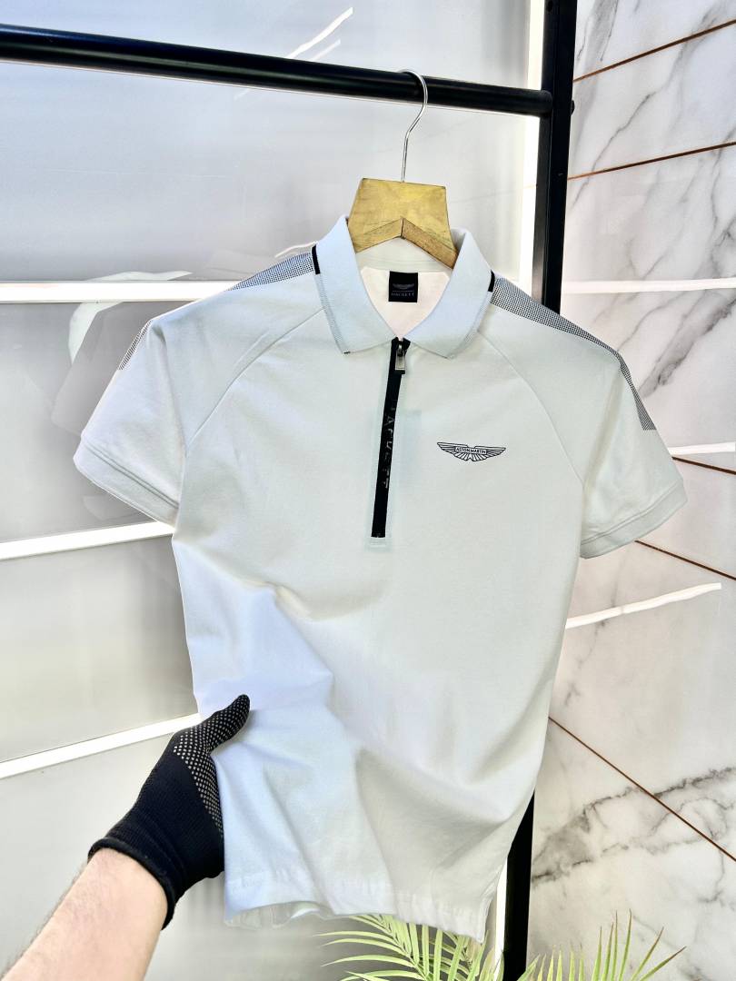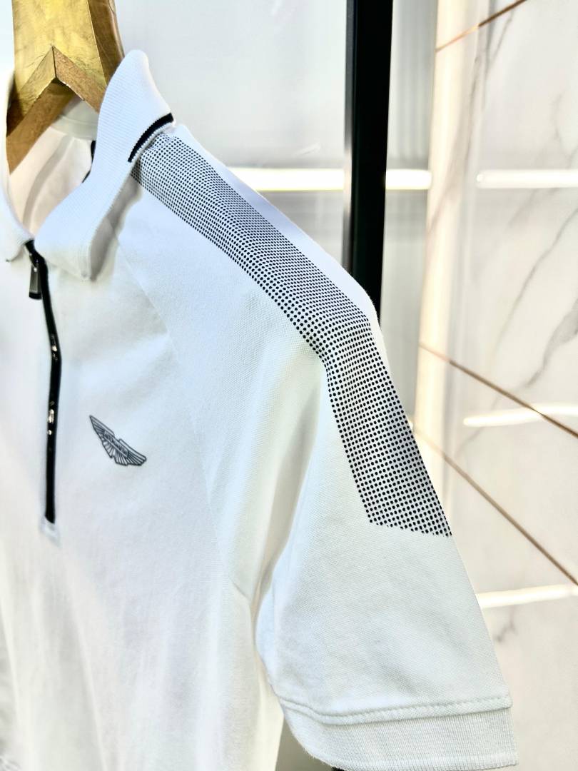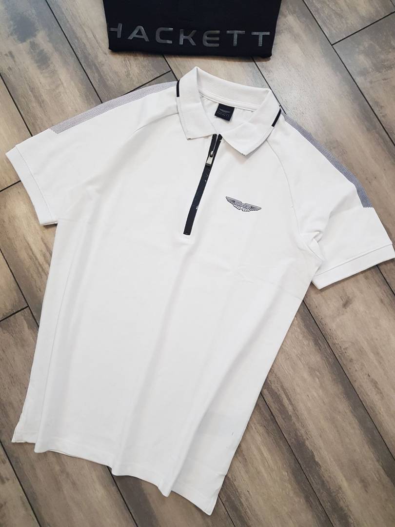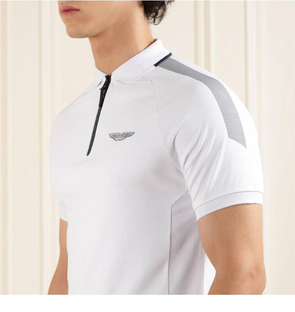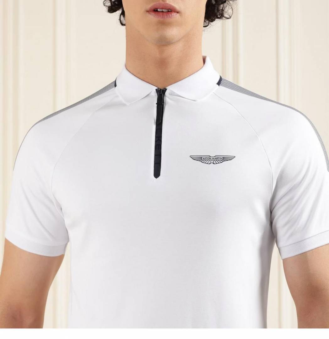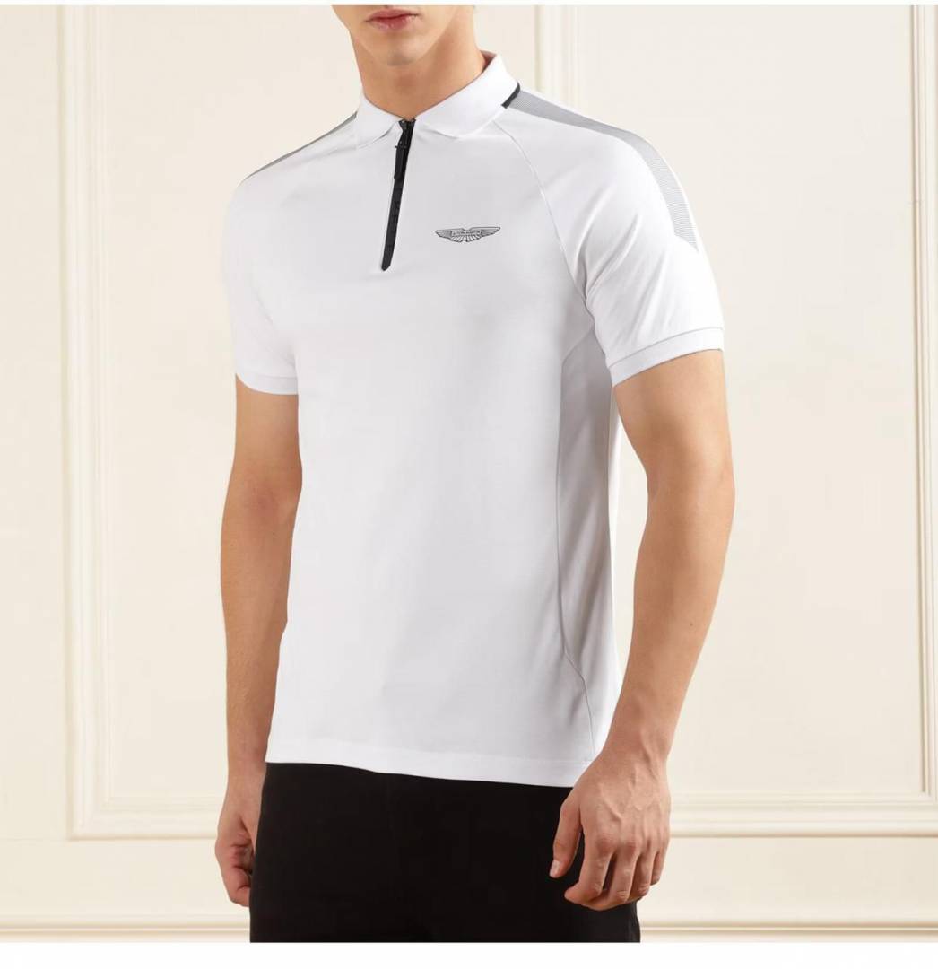 Sale Aston Martin Hacket t White Zipper Polo Neck Premium Collar T-shirt F1852-WH